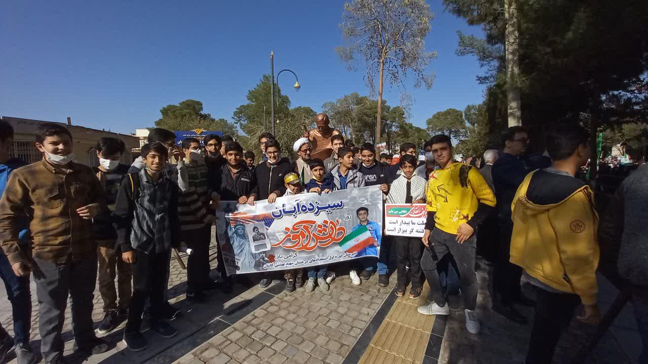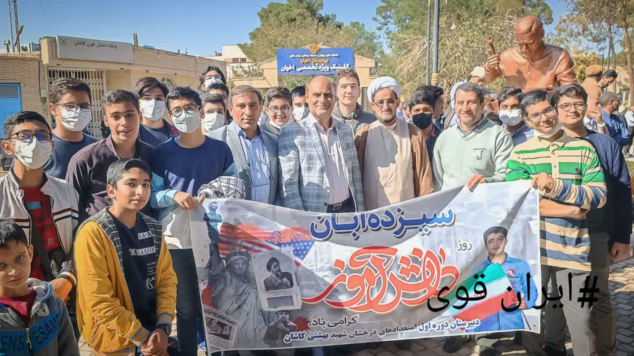 دانش آموزان دبیرستان استعدادهای درخشان شهید بهشتی کاشان در روز 13 آبان به همراه دبیران و کادر آموزشگاه در راهپیمایی 13 آبان حضور حماسی خود را به نمایش گذاشتند.لینک دانلود
